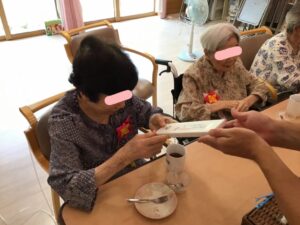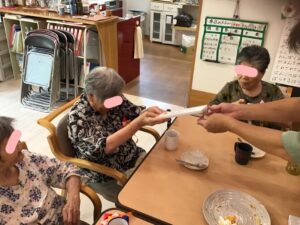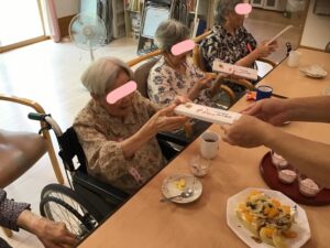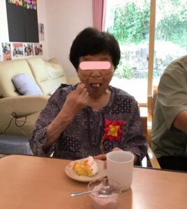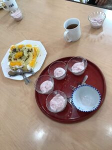 おやつ時に手作りケーキとフルーチェを頂きました。