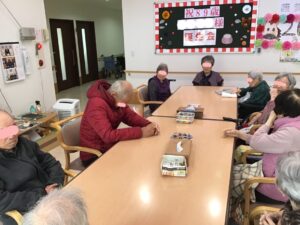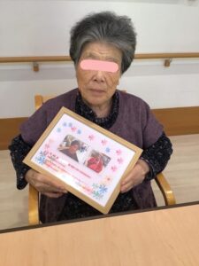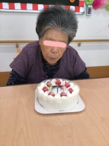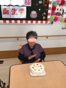1月の誕生会2026年1月9日 1月2日が誕生日でしたが、帰省されていた為、1月3日に89歳になられる利用者様の誕生会を行いました。 皆さんでお祝いしました。喜ばれ、3曲ほど歌われ誕生会が盛り上がりました。