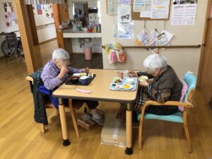 先日2月15日に88歳、2月20日に87歳を迎えられた利用者様の誕生日会を2月24日に2名合同で行いました😊88歳を迎えられた利用者様には米寿という事で黄色のちゃんちゃんこを着て頂きました😄
